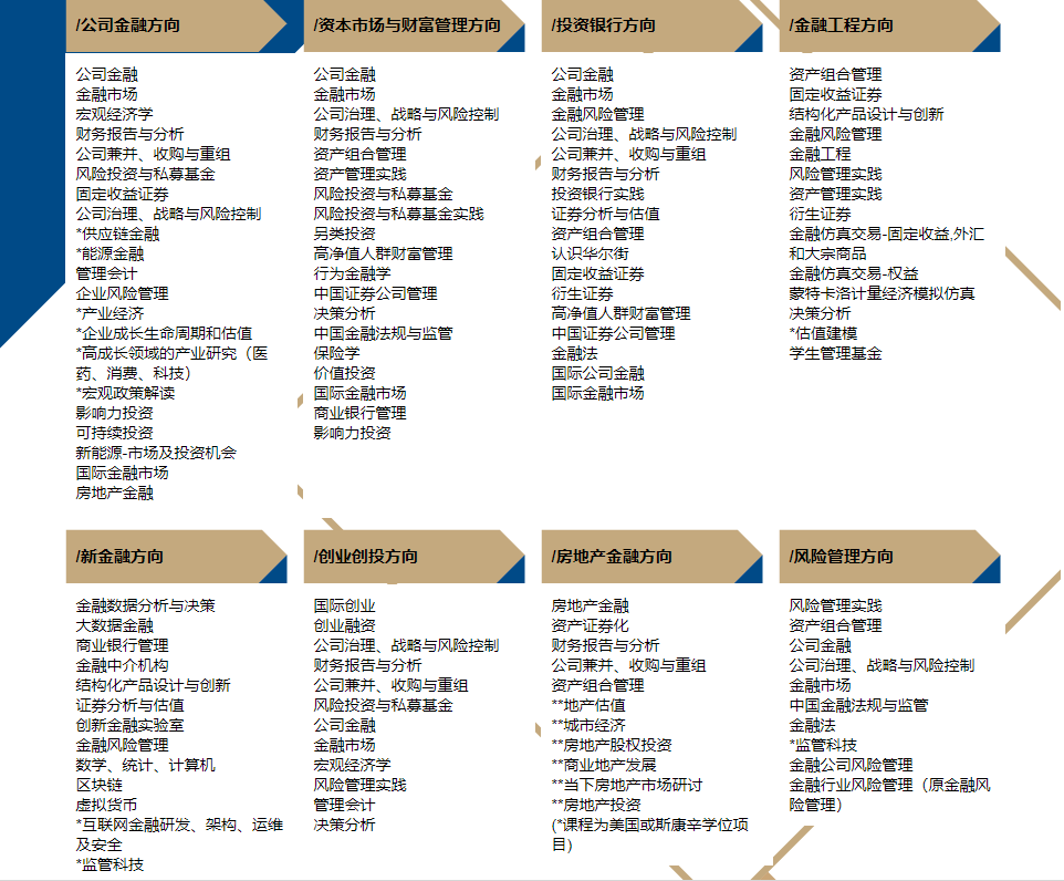 上课地点 | 上海高级金融学院徐汇校区、陆家嘴校区 | 上海高级金融学院徐汇校区、陆家嘴校区 | 高金北京校区、高金上海校区(部分选修课) |